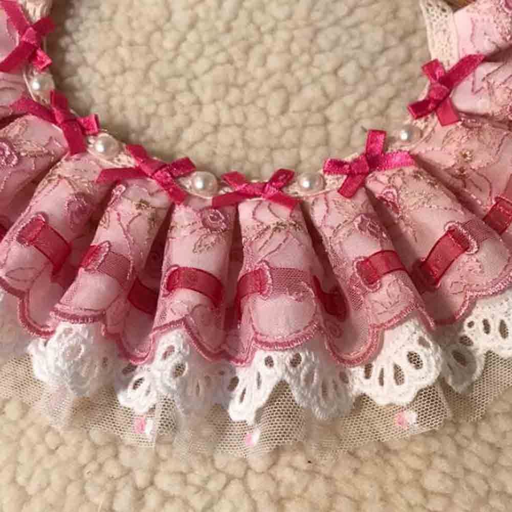 Retro Pink Lace Collars European Style Beads Handmade Cat/Dog Necklace 8.2-11.2"