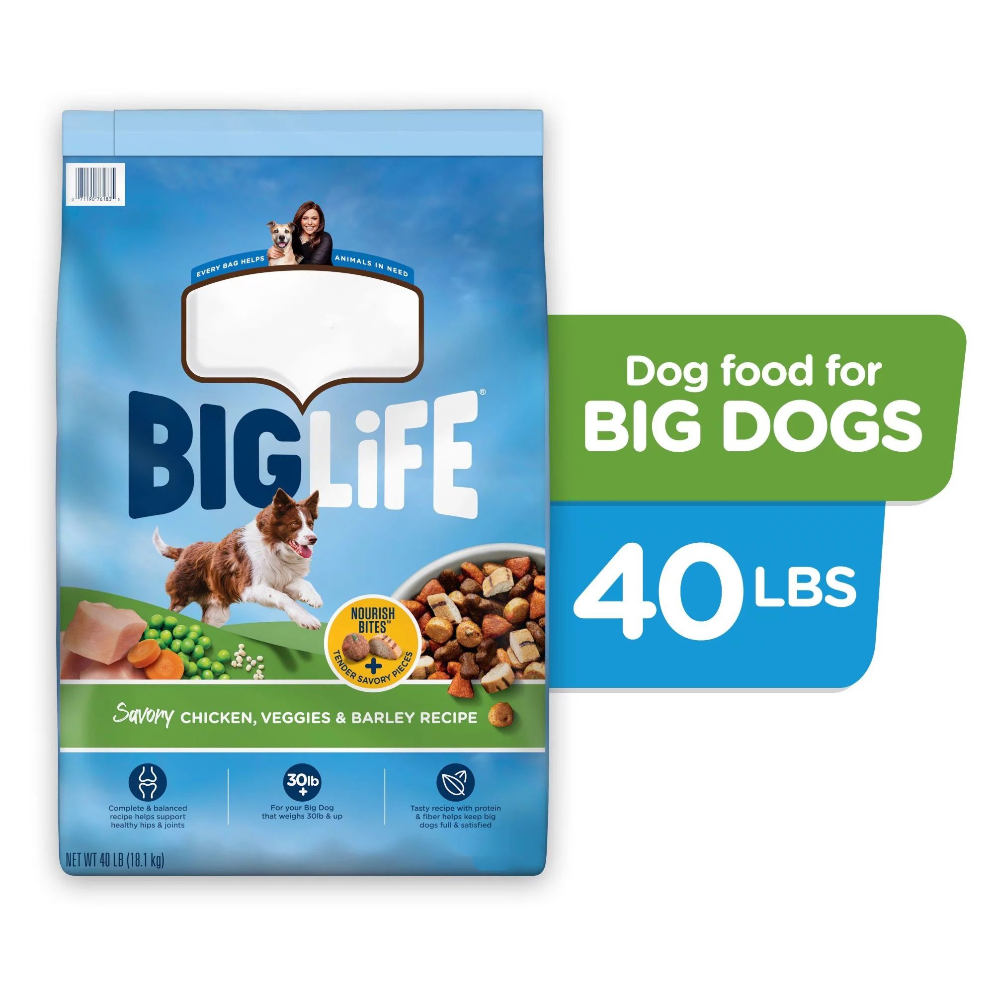 Big Life Dry Dog Food for Big Dogs; Savory Chicken; Veggies & Barley Recipe; 40-Pound Bag