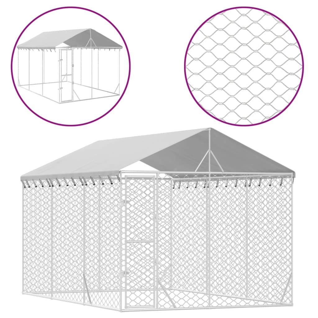 Outdoor Dog Kennel with Roof Silver 9.8'x14.8'x8.2' Galvanized Steel Outdoor Dog Kennel with Roof Silver 9.8'x14.8'x8.2' Galvanized Steel Outdoor Dog Kennel with Roof Silver 9.8'x14.8'x8.2' Galvanized Steel