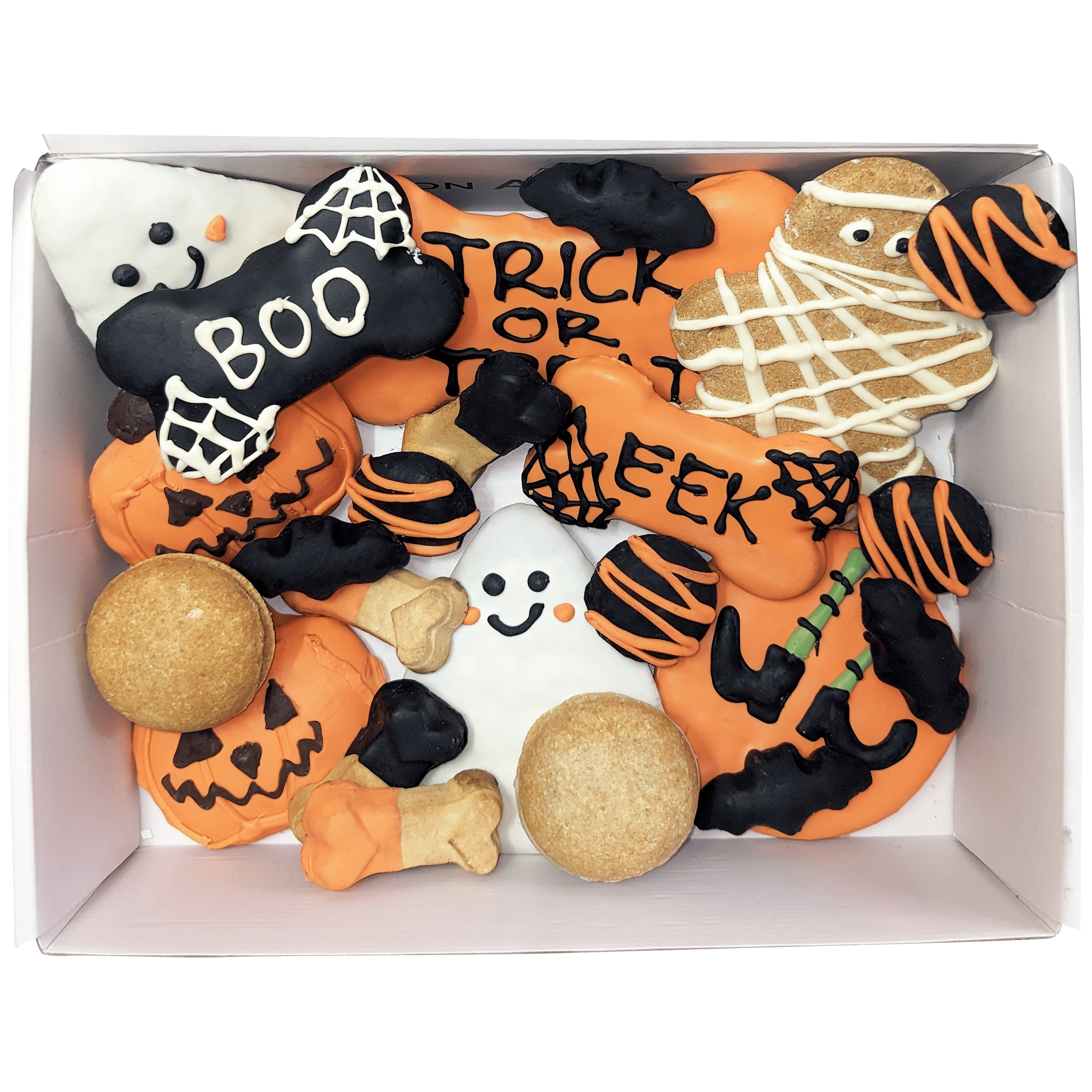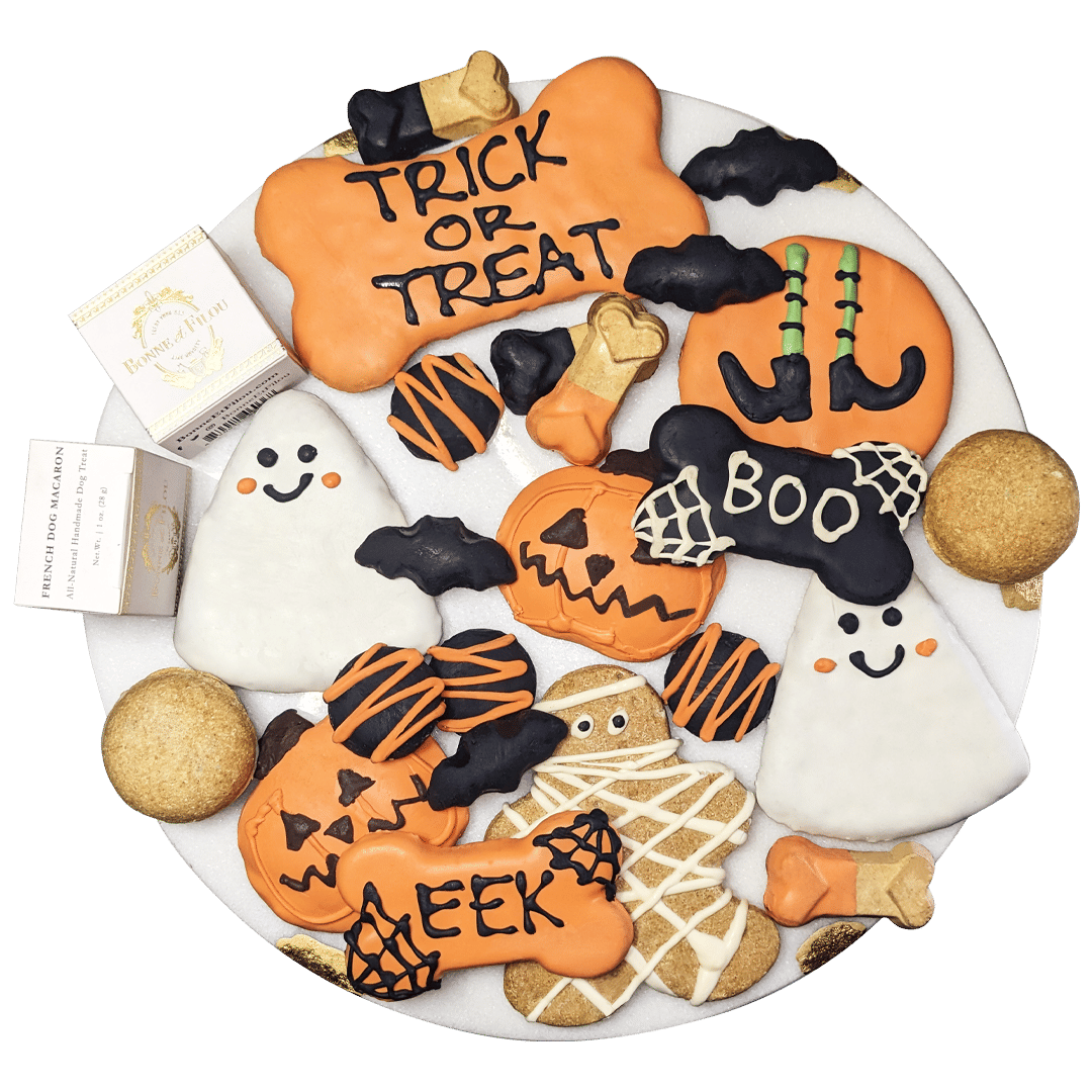 Includes 23 themed treats including happy ghost treats, spooky feet, dog bones, dog macarons, bats and so much more!