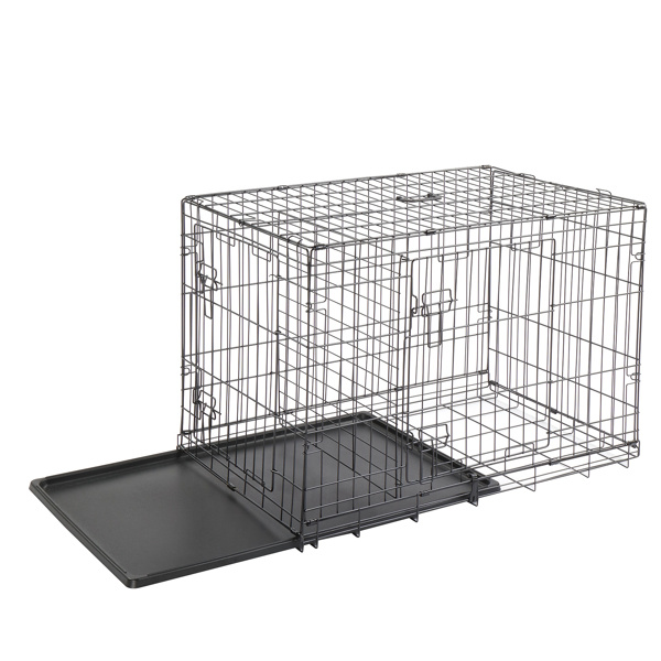 Have you ever noticed your dog always sleeps and relaxes under a table or in a corner? This Pet Cage is the perfect solution to make your pet feel more secure and confident. These premium quality metal pet crates are crafted using commercial-quality materials and superior manufacturing. The crates feature multiple doors that lock easily with a slide-bolt latch, with a durable black electro-coat finish. To set-up, simply unbox and fold open; no tools are required. Each crate features a lightweight, slide-out tray made of durable ABS plastic.