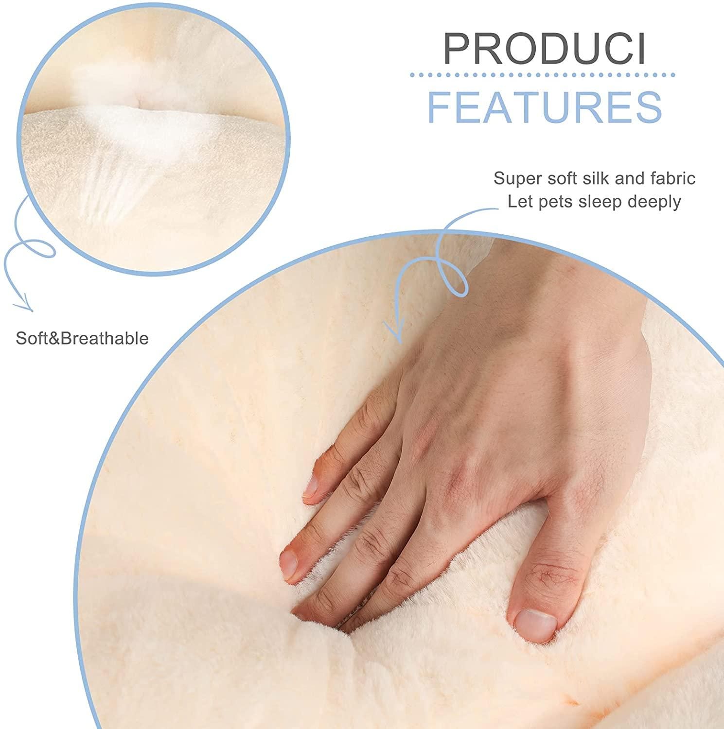 1.[Premium Pet Bed]: The imitation linen material makes the bed strong and durable; soft; and breathable plush fabric makes the cat bed gentle and comfy. Stuffed with premium materials ; provides your lovely friend with a comfortable; healthy; and quality sleeping environment.